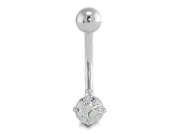 14K White Gold 5mm Cubic Zirconia Belly Ring