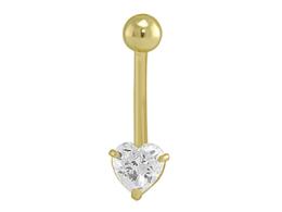 14K Yellow Gold 6mm Heart Cubic Zirconia Heart Belly Ring