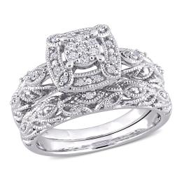 Julianna B Sterling Silver Square Shape Cubic Zirconia Halo Bridal Set