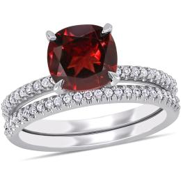 Julianna B 14K White Gold Garnet & 0.25CTW Diamond Fashion Ring