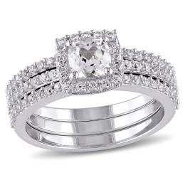 Julianna B 10K White Gold Created White Sapphire and Diamond Ring
