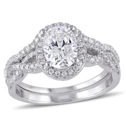 Julianna B Sterling Silver Halo Oval Cubic Zirconia Twist Bridal Set