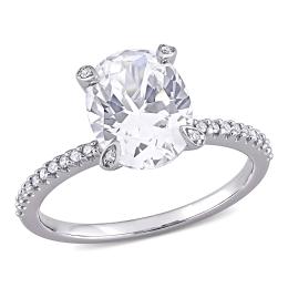 Julianna B 10K White Gold Created White Sapphire & 0.1CTW Diamond Bridal Ring