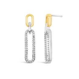 Sterling Silver & 10K Yellow Gold 0.18CTW Diamond Paperclip Earrings