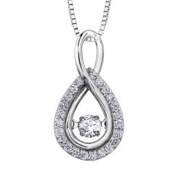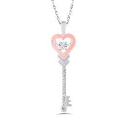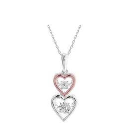 Sterling Silver 10K Rose Gold Infinity Heart Dancing Diamond Pendant