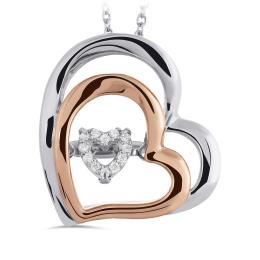 Dancing Diamond Heart Pendant in Sterling Silver and 10K Yellow Gold