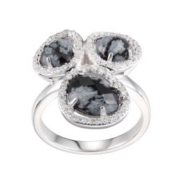 Elle Genuine Snowflake Obsidian Cubic Zirconia Halo Ring