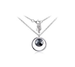 Elle Sterling Silver Rhodium Plated Black Agate Pendant