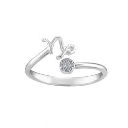 Sterling Silver Diamond Capricorn Zodiac Ring - Size 6