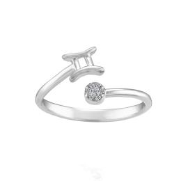 Sterling Silver Diamond Gemini Zodiac Ring - Size 7