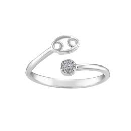 Sterling Silver Diamond Cancer Zodiac Ring - Size 7