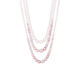 Sterling Silver 60" 4MM-11MM White and Purple Freshwater Pearl Necklace