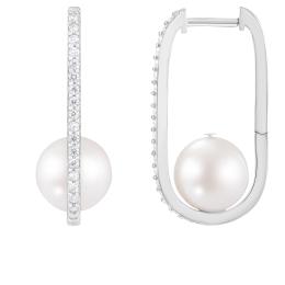 Sterling Silver 8-9mm Freshwater Pearl & Cubic Zirconia Earrings