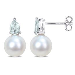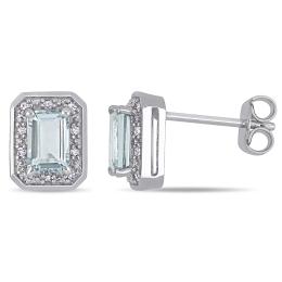 Julianna B Sterling Silver Aquamarine, Blue Sapphire & Diamond Earrings