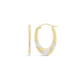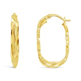 10K Yellow Gold Diamond Cut Oval Hoop Earrings