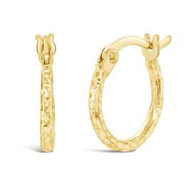 14K Yellow Gold 1.5mm x 10mm Diamond Cut Round Tube Hoops