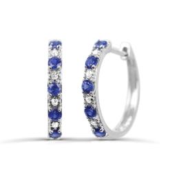 10K White Gold Sapphire & Diamond Hoop Earrings