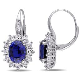 Julianna B Sterling Silver Opal White Topaz and Diamond Halo Leverback Earrings