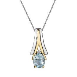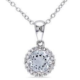 Julianna B Sterling Silver 0.08CTW Diamond & Aquamarine Halo Pendant