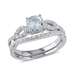 Julianna B 10K White Gold Aqua, Created White Sapphire & Diamond Bridal Set