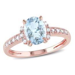 Julianna B 10K Rose Gold 0.33CTW Diamond & Aquamarine Bridal Set
