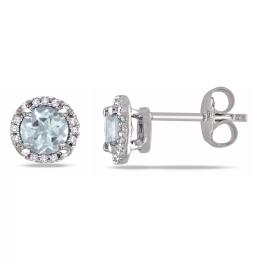 Julianna B Sterling Silver 0.12CTW Diamond & Aquamarine Earrings and Pendant