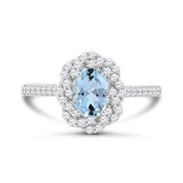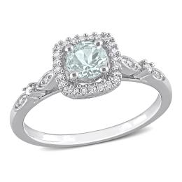 JULIANNA B 10K White Gold Aquamarine Created White Sapphire & Diamond Ring