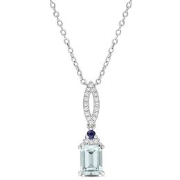 Julianna B Sterling Silver Aquamarine, Blue Sapphire & Diamond Pendant