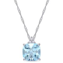 Julianna B White Gold Sky Blue Topaz & Diamond Fashion Pendant with Chain
