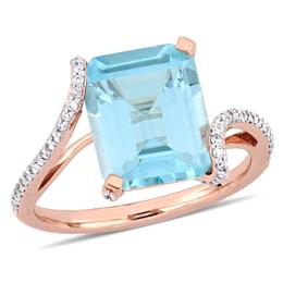 Julianna B Sterling Silver Blue Topaz & Diamond Twist Split Shank Cocktail Ring