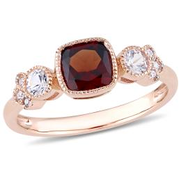 Julianna B 10K Rose Gold Garnet, White Topaz & 0.30CTW Diamond Ring