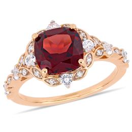 Julianna B 10K Rose Gold Garnet White Topaz & 0.03CTW Diamond Fashion Ring