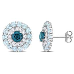 Julianna B Sterling Silver London Blue Topaz & White Topaz Clip Earrings