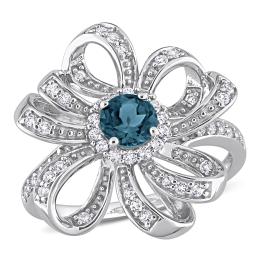 Julianna B Sterling Silver London Blue & Sky Blue Topaz Flower 17" Pendant