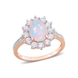 Julianna B Sterling Silver Opal and 0.10CTW Diamond and White Topaz Halo Ring