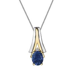 Sterling Silver Created Blue & Created White Sapphire Pendant with Chain