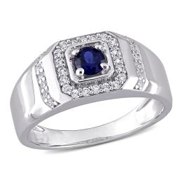 Julianna B Men's 10K White Gold Created Sapphire & Diamond Ring