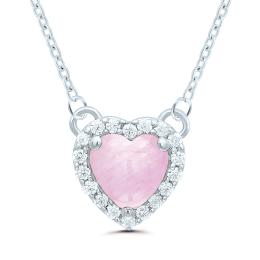 POLAR PINK Sterling Silver 16" Pink Sapphire & Diamond Heart Necklace