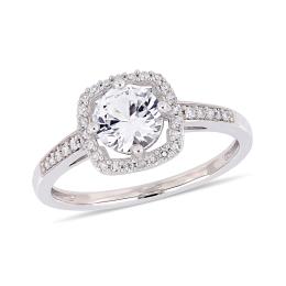 Julianna B 10K White Gold Created White Sapphire & 0.10CTW Diamond Ring