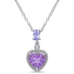 Julianna B Sterling Silver Amethyst, Tanzanite & 0.017CTW Diamond Heart Pendant