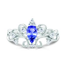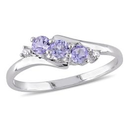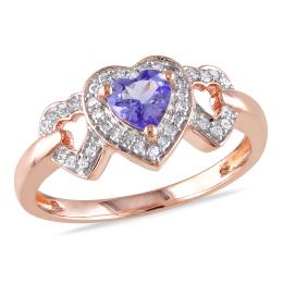 Julianna B 10K White Gold Diamond and Heart Shaped Amethyst and Tanzanite Ring