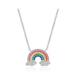 Sterling Silver 19" Cubic Zirconia Rainbow Cloud Pendant
