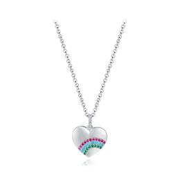Sterling Silver 19" Cubic Zirconia Rainbow Heart Pendant