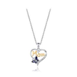 Sterling Silver Yellow Plated Created Blue and White Sapphire Mom Pendant
