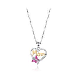 Sterling Silver Yellow Plated Created Ruby & Created White Sapphire Mom Pendant