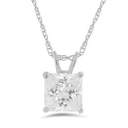 10K White Gold 6mm Princess Cubic Zirconia Solitaire Pendant