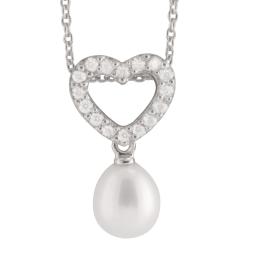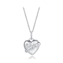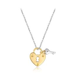 Sterling Silver Yellow Plated 19" Cubic Zirconia Heart Lock & Key Pendant