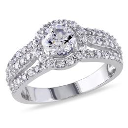Julianna B Sterling Silver Triple Row Halo Cubic Zirconia Engagement Ring
