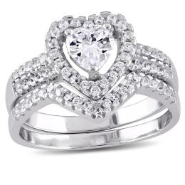 Julianna B Sterling Silver Heart-Shape Cubic Zirconia Halo Bridal Set