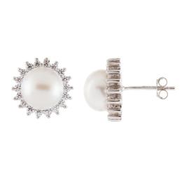 Julianna B Sterling Silver Double Halo Cubic Zirconia Engagement Ring